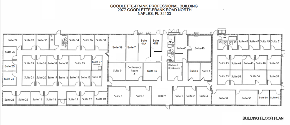 The Goodlette-Frank Professional Building features shared lobby areas and convenient elevator access to all floors.